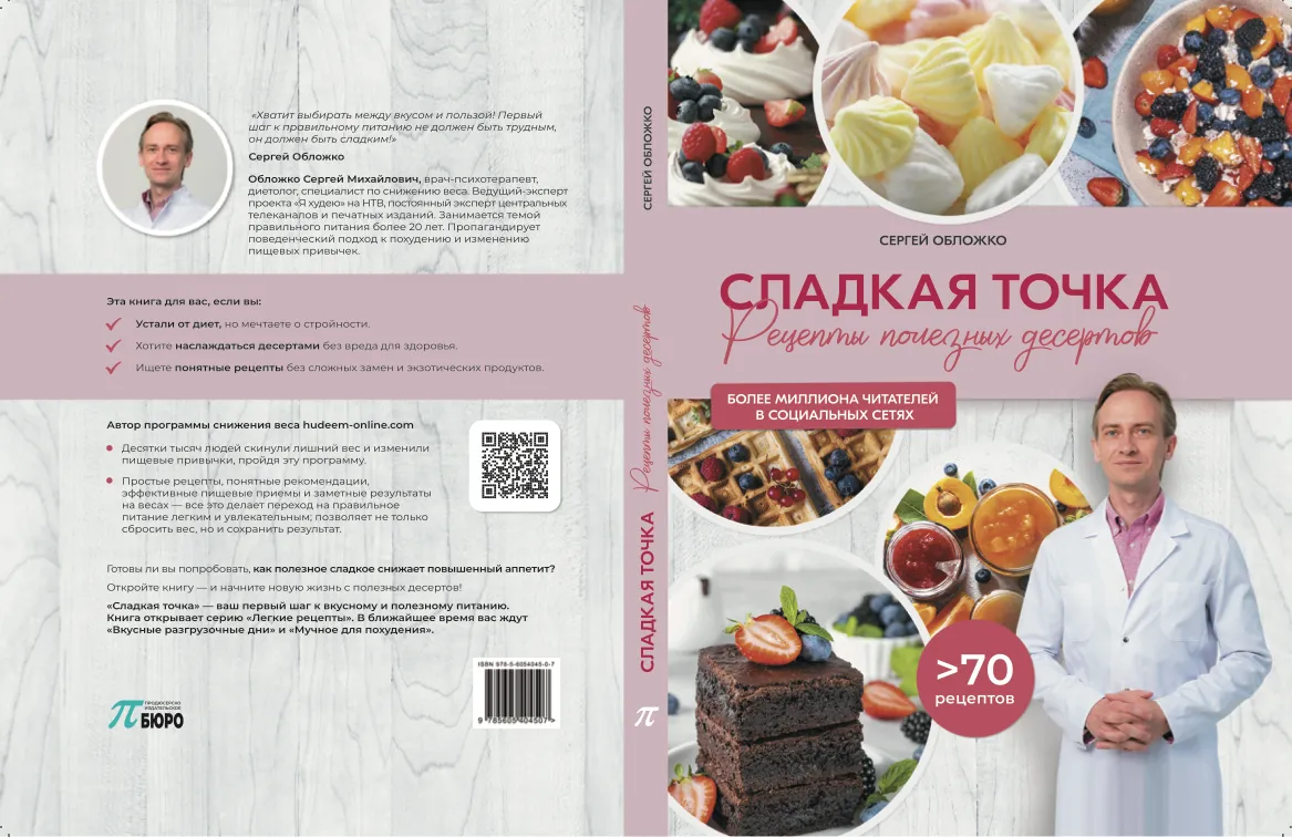 Книга «Сладкая точка» психотерапевта и диетолога Сергея Обложко является частью программы по обучению правильному питанию и модификации пищевого поведения. Издание отталкивается от многолетнего опыта проведения программ. Первая книга из серии «Легкие рецепты» — пошаговое руководство по приготовлению полезного сладкого — охватывает основные типы десертов.